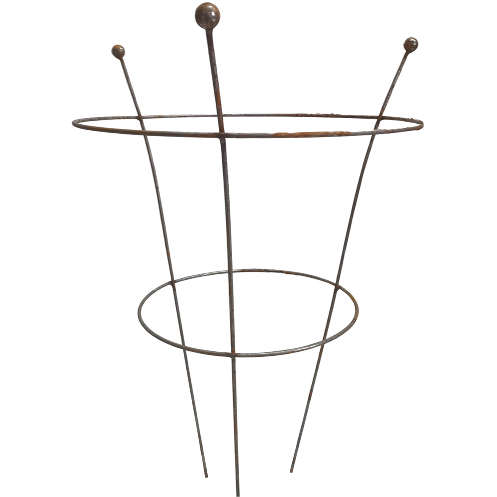 Set of 4 x large Herbaceous 3-leg plant support rings that have already been naturally rusted for an authentic look. Created using strong, solid bare steel rods with strong welds to ensure a long-lasting structure for your flowers and plants. Pre-rusted to encourage a healthy blend of colours in the garden. Perfect for use with a variety of plants and garden shrubs. The item will have started the rusting process on delivery. The rust level may differ for each unit. Ensure you use gloves when handling to prevent rust stains. Plant Support Size: Height: 54cm. Top Ring: 40cm diameter. Bottom Ring: 30cm diameter