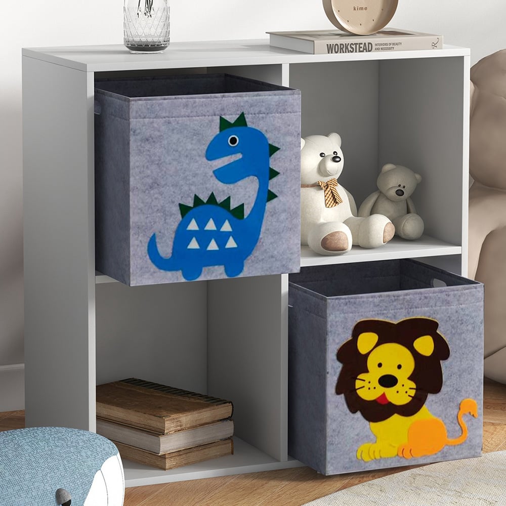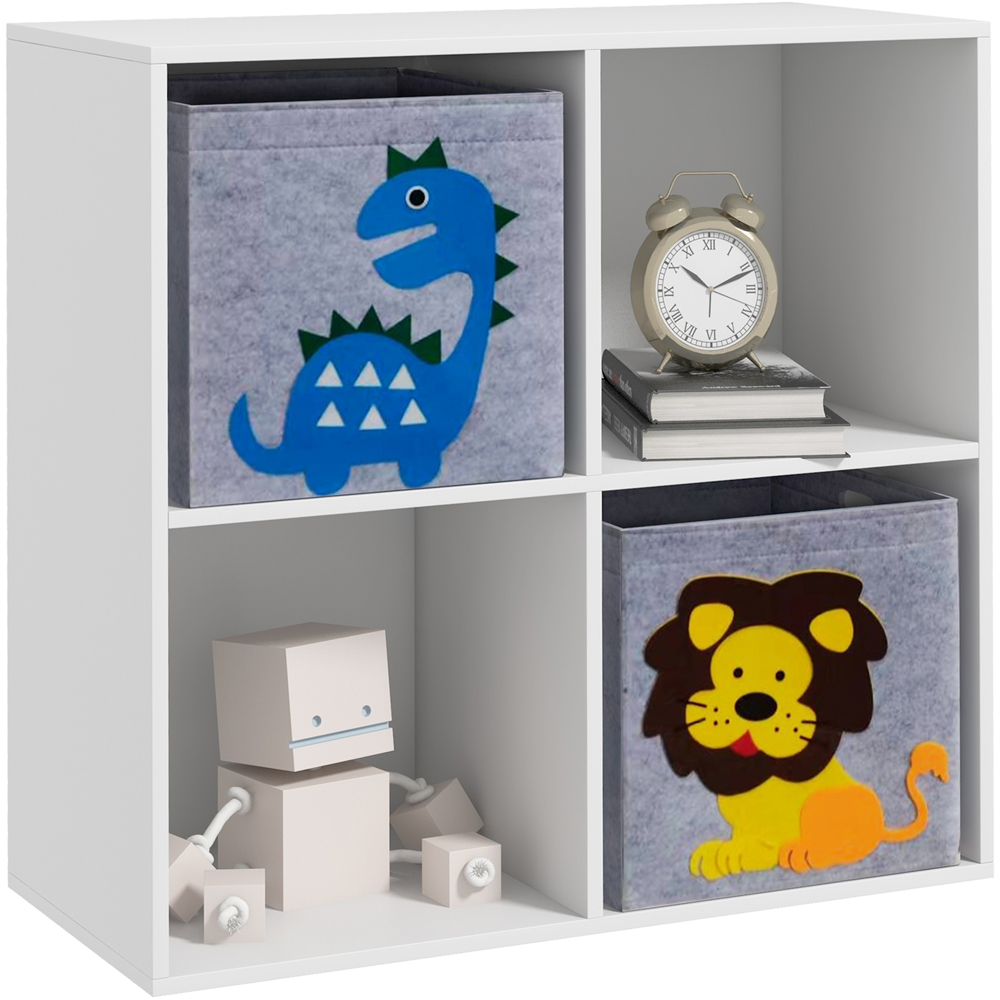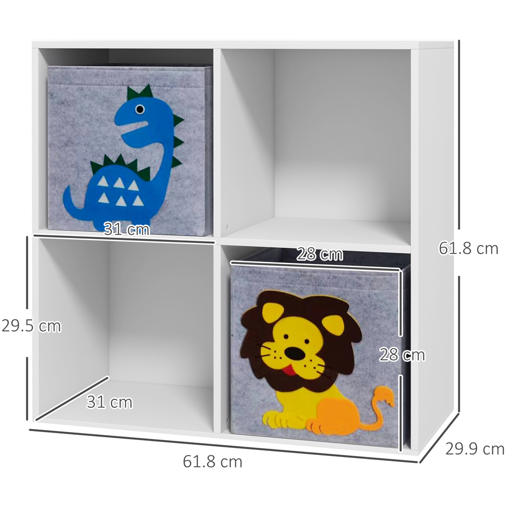 The solution to your child's messy room – this ZONEKIZ storage cabinet. Four spacious cubes offer plenty of space to display and organise toys and other bits, so there's less clutter around. A stable design, it sits securely on the floor and includes an anti-tip device for safety. Straightforward assembly saves time and effort, you'll have it set up quickly and ready to use. Finished with cute cartoon-like animals on the front, it creates a fun and vibrant atmosphere for your child's space.