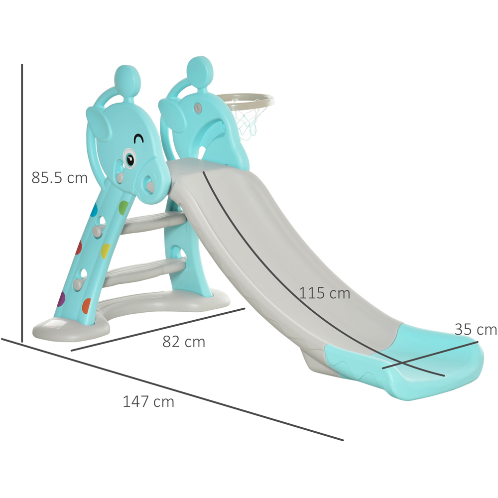 Why choose our 2 in 1 folding kid slide? The slide set has 2 functions, a child's slide and a basketball hoop, which also allows us to create a private amusement park. It is a perfect beginner slide and the size is especially suitable for children 18 months old - 4 years old. Anywhere in the house can fit this compact and convenient slide, and it is foldable and easy to store. The ladders of this toy slide provide a safe challenge for children as they have a non-slip coating on the texture.