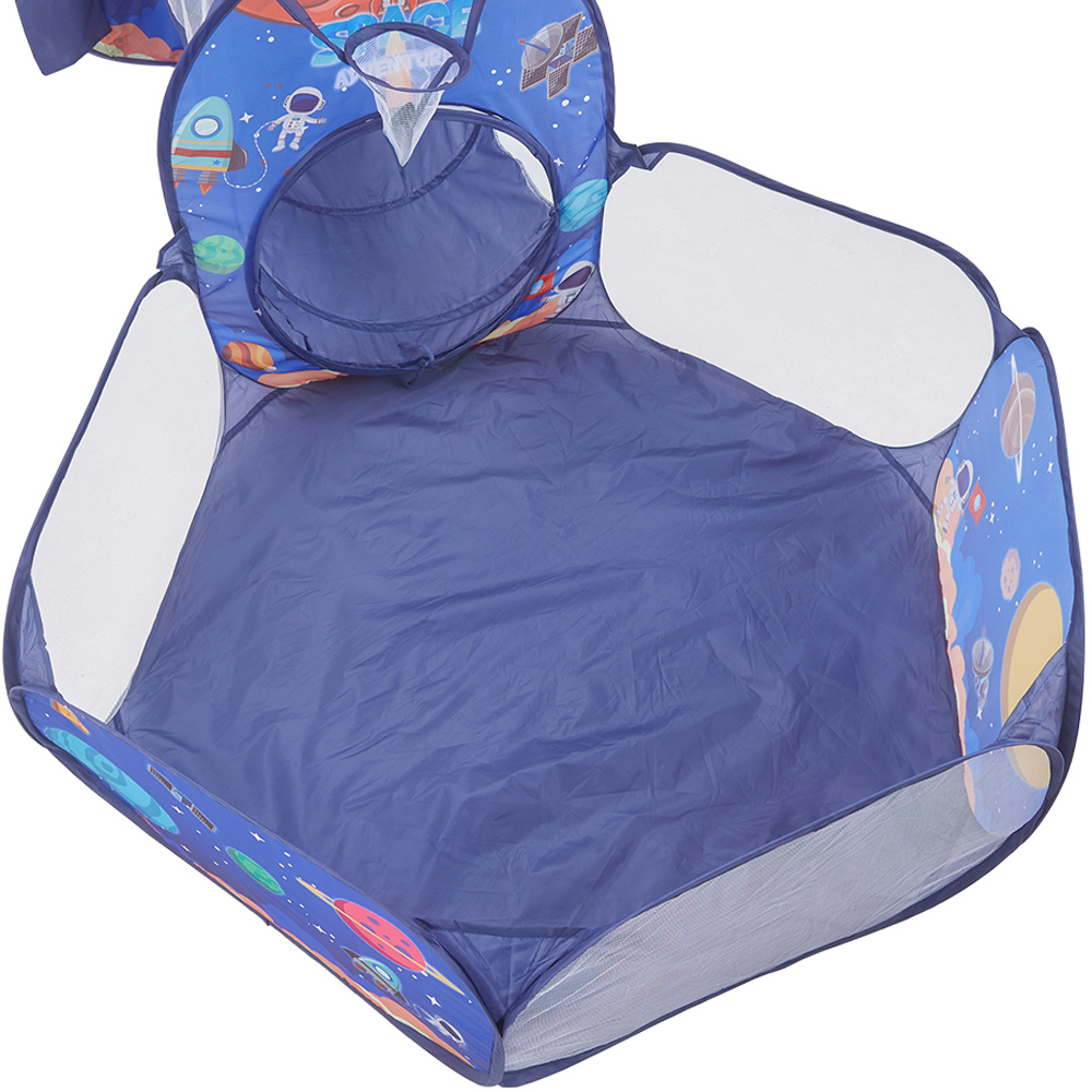 This aerospace-themed tent is a presence that will instantly delight any child! Featuring three fun sections—a tent, a tunnel, and a ball pit—it brings the excitement of aviation to life. Imagine the joy as kids jump, crawl, or cosy up with a storybook. In their little world, they can play freely and enjoy endless fun. Quick to set up in minutes, it also folds down easily for compact storage when not in use.