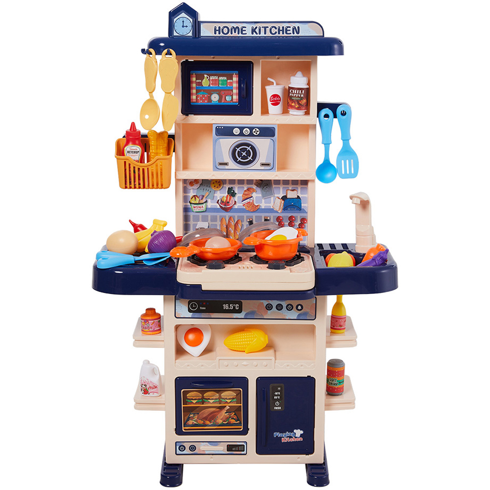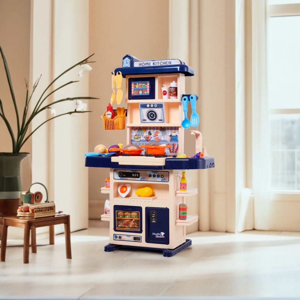 Bring a little chef's kitchen dream to life with this play kitchen set. Packed with all the essentials for pretend cooking, it includes a kitchen countertop, a fridge, an oven, and a variety of kitchen accessories. The stove adds to the fun with smoke, sound, and light effects, while the sink simulates running water for washing food ingredients and dishes. There are also multiple storage racks that help develop organisational skills. It’s a perfect way for a kid to encourage imagination and social play. Made from high-quality and odourless plastic with smooth edges, this set offers immersive play with light and sound effects, making it perfect for playing with friends and fostering teamwork.