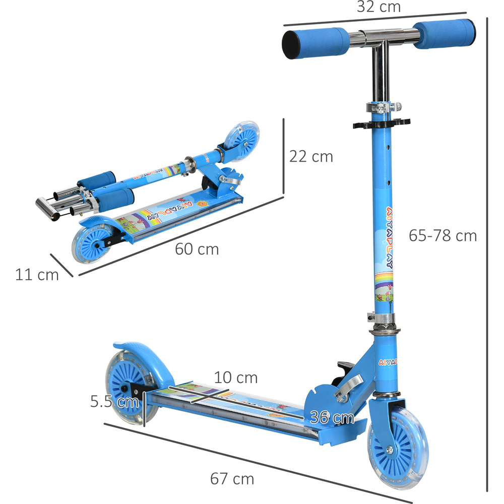 With this Blue Kids Scooter from Tommy Toys days out are extra special. As children ride, the wheels light up, whilst the LED around the foot deck glow when the switch is on. There's also built-in music, which adds to the fun. With adjustable handlebars between 80 to 120cm, it's suitable for long-term use – as your child grows, so will this scooter. It's wrapped with thick foam, making it comfortable to hold. Finished with a rear brake, which brings it to a swift stop. The frame is metal and the wheels are plastic, making this foldable scooter suitable for daily and keeping the ride smooth. Suitable for ages from three to seven years, it is a perfect toddle scooter to enjoy.