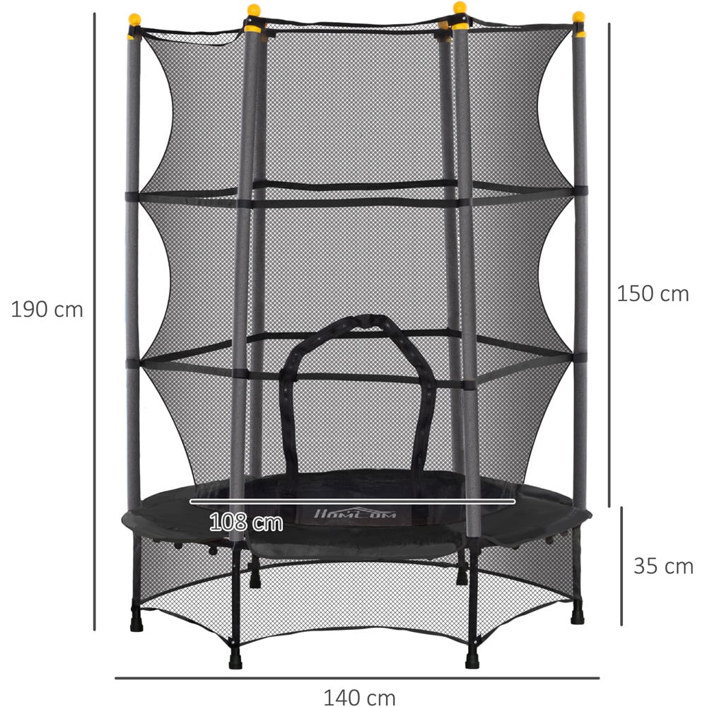 The HOMCOM trampoline offers a delightful way to keep energetic kids entertained. Featuring a spacious, safe jumping area encircled by a net and cushioned poles, this trampoline ensures hours of fun and laughter. Its spring-free bungee design enhances safety, while its portability allows for both indoor and outdoor use, ensuring kids can jump anytime, anywhere.