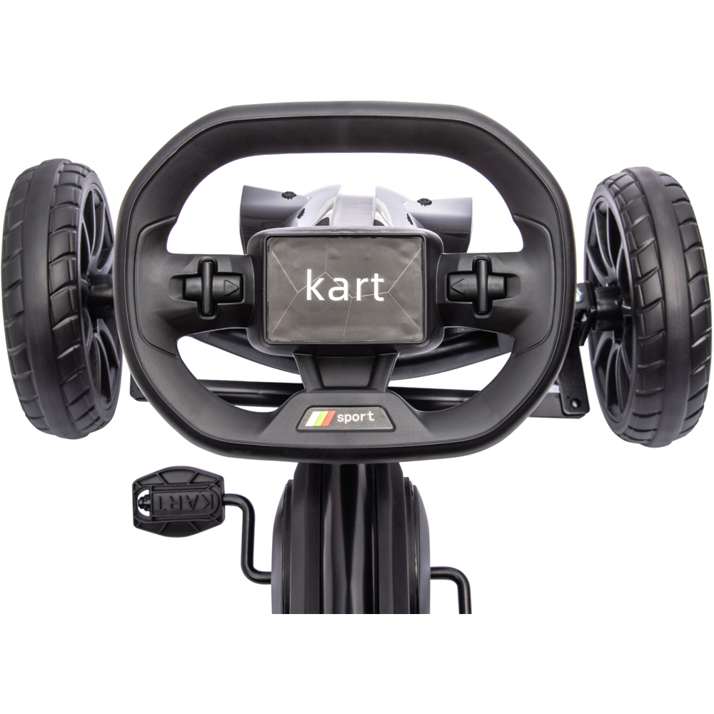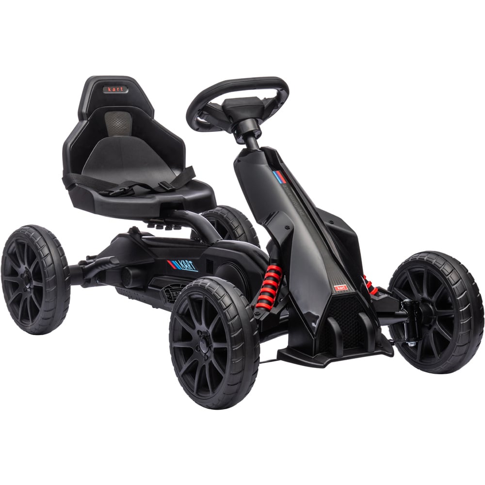 Unleash your child's adventurous spirit with this Tommy Toys Kids Black Pedal Go Kart with Adjustable Seat and Handbrake. Offering ultimate control, it has a handbrake and forward and reverse functions for smooth and simple navigation. No batteries are required – they'll use the pedals to move forward, which gets their legs moving and keeps them physically active. Get ready for non-stop fun and excitement, creating childhood memories that last a lifetime. Adjust the seat by 14cm, ensuring a comfortable fit for children of different heights and ages. They'll enjoy this kid's go-kart, even as they grow taller. This pedal car goes forward and backwards, whilst the handbrake brings it to a stop when needed. The EVA wheels and swing axle help you conquer any surface confidently. They provide a smooth and stable ride, ensuring excellent traction on cement, brick, gravel and asphalt roads. This go-kart offers an exhilarating ride for young adventurers aged three to eight years.