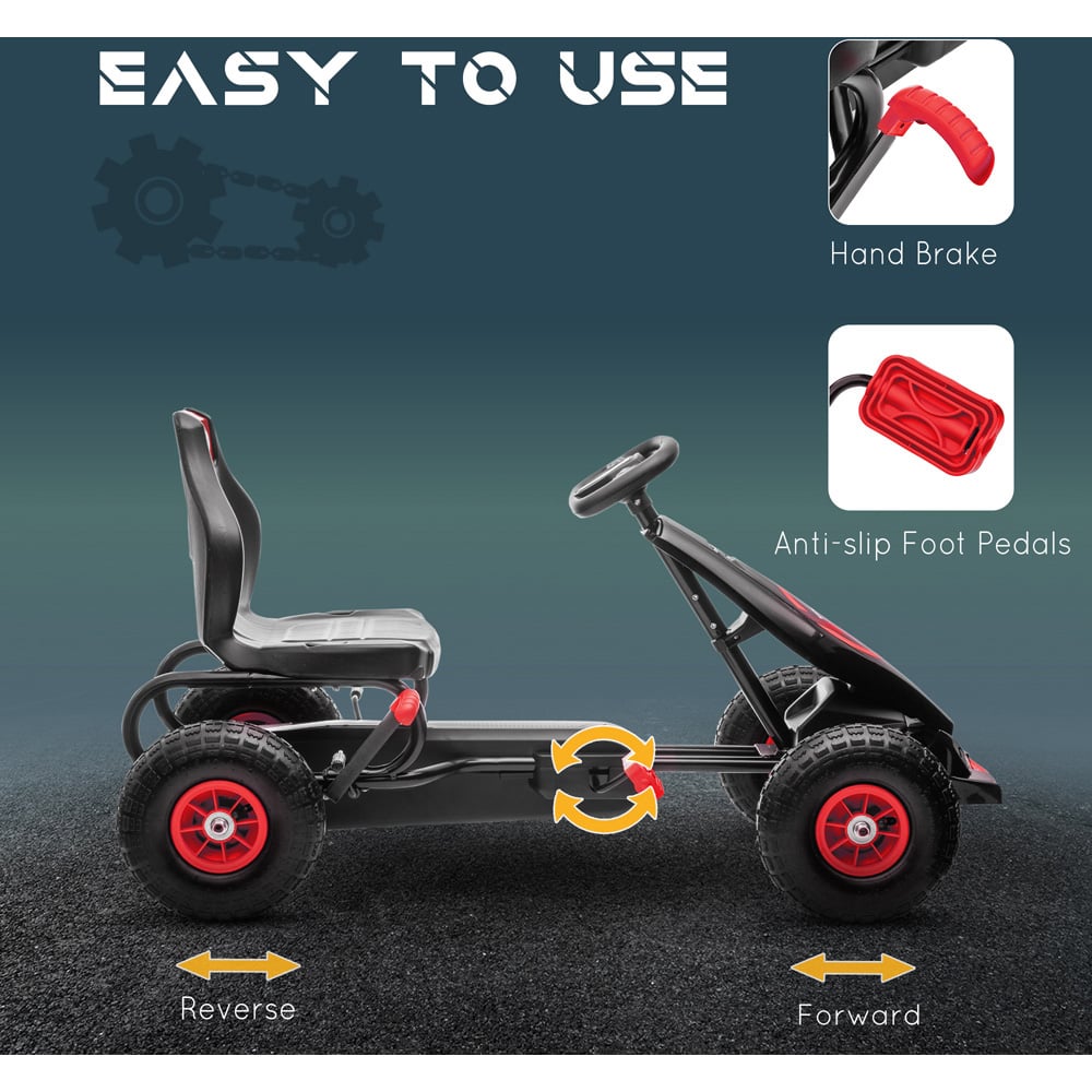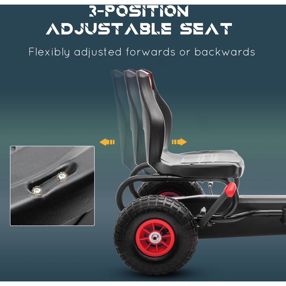 Perfect for little racers, this Tommy Toys Kids Pedal Go-Kart with Adjustable Seat Red will make the outdoors a lot more exciting and adventurous. Its sporty appearance will have children feeling like prime race car drivers. Simple to ride, they'll use the pedals to move forwards and backwards, whilst the handbrake brings the kart to a stop when needed. With tough and wear-resistant wheels, the shock-absorbing suspense system keeps the ride smooth on different grounds. It has a 0-6cm adjustable ergonomic seat for maximum comfort – perfect for ages 5-12 years. The seat can be switched to three different positions, ensuring they're comfortable when seated. Children can continue using this pedal car as they grow taller. This go-kart works well on cement, brick and asphalt pavements.