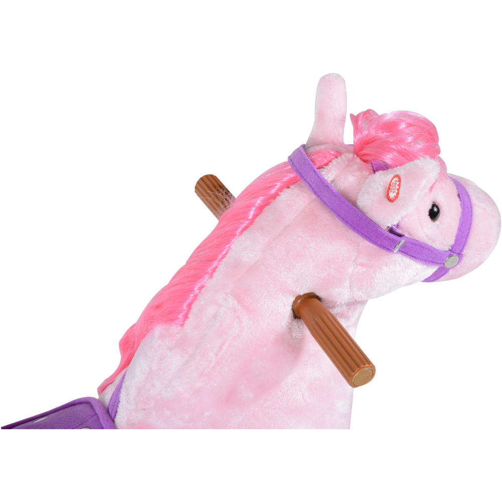 This Tommy Toys Rocking Horse Pony Toddler Ride On in pink is a perfect toy for your child, different to static rocking horses these can move around as your child pushes around. It has a super soft body with a saddle and the ability to make sounds when the ears are squeezed. It also has four high-quality PU wheels with front footsteps. A great toy for your child to ride or just walk around with, it can give your lovely baby the real experience of a real horse. The softly padded polyester plush body, two handlebars and comfortable riding saddle recreate the look and feel of thrilling horseback riding adventures. Requires 2 x AA batteries required (included).