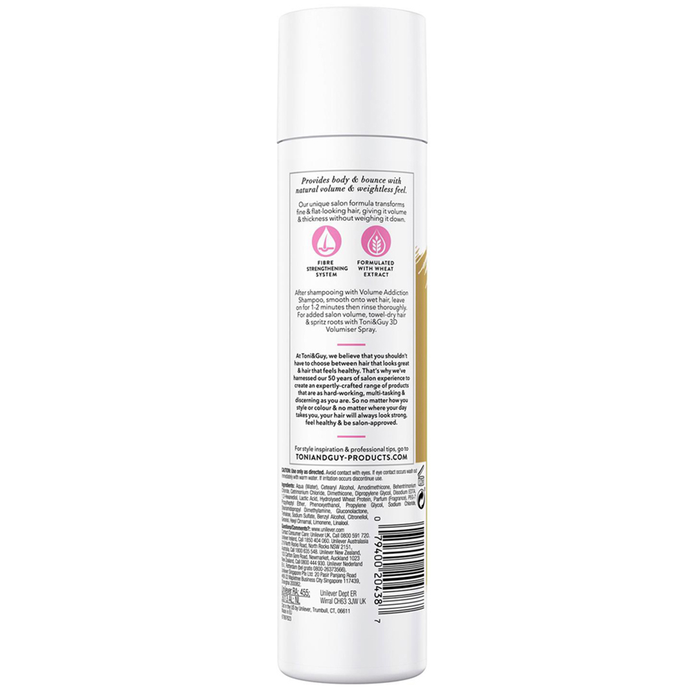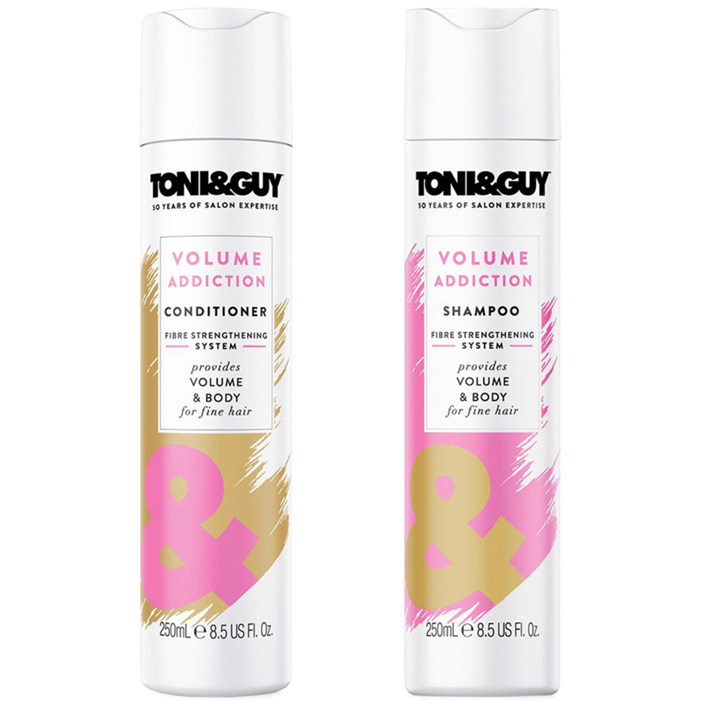 Toni and Guy Volume Addiction Shampoo and Conditioner, All Hair Type, 250ml. Toni & Guy intense softness Shampoo and Conditioner gently nourishes and fortifies for everyday manageability, leaving your hair feeling refreshed. Intense Softness gently cleanses and restores natural softness and shine. The salon-inspired formula penetrates the hair fibre for stronger, healthier-looking hair and helps prevent split ends. Start with hair that's gently cleansed and nourished, no matter which style you go for.