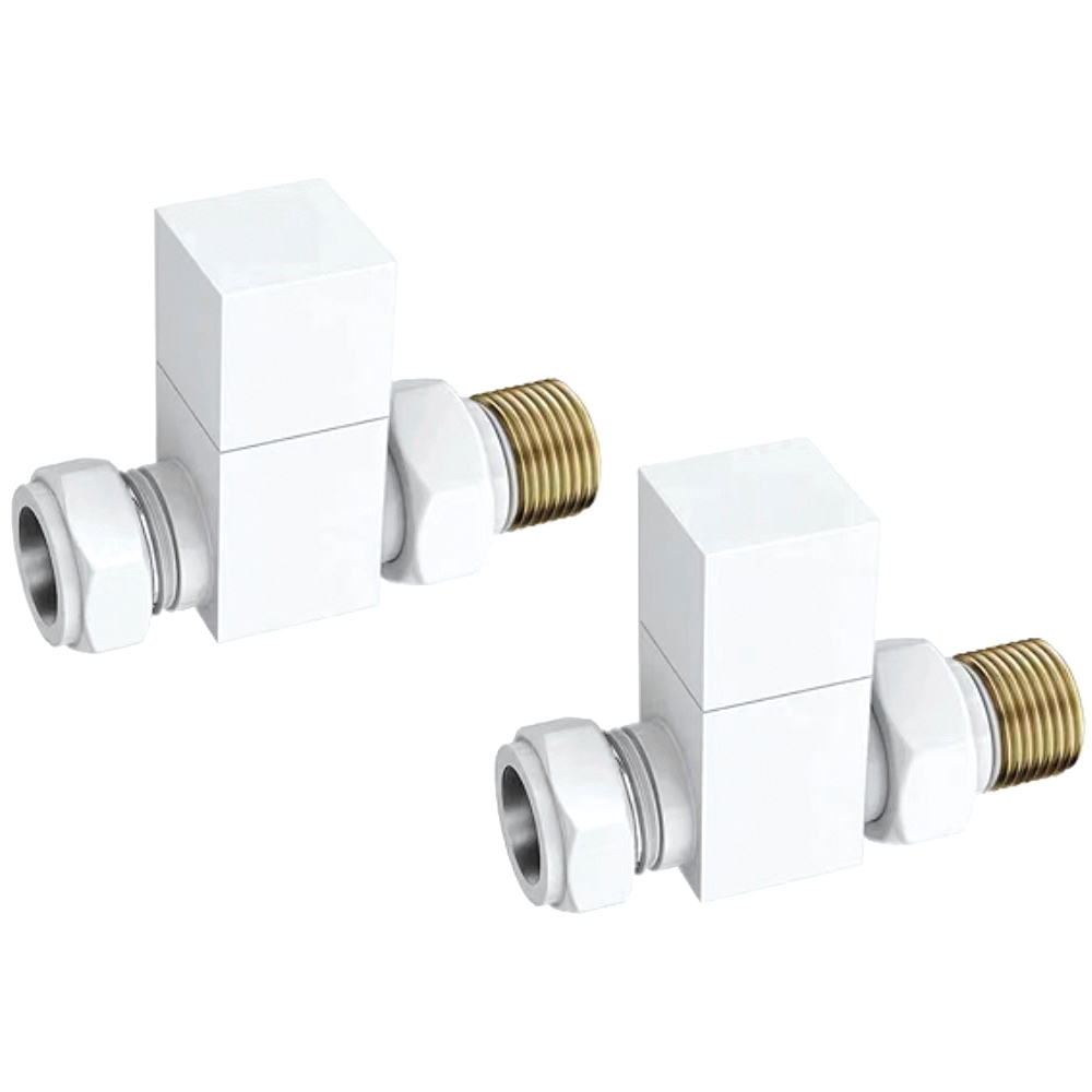 Upgrade your bathroom with contemporary Towelrads White Square Straight Valve 2 Pack 15mm x 1/2inch. Match the Square tube style of your towel radiator or bathroom fittings with square-style radiator valves.