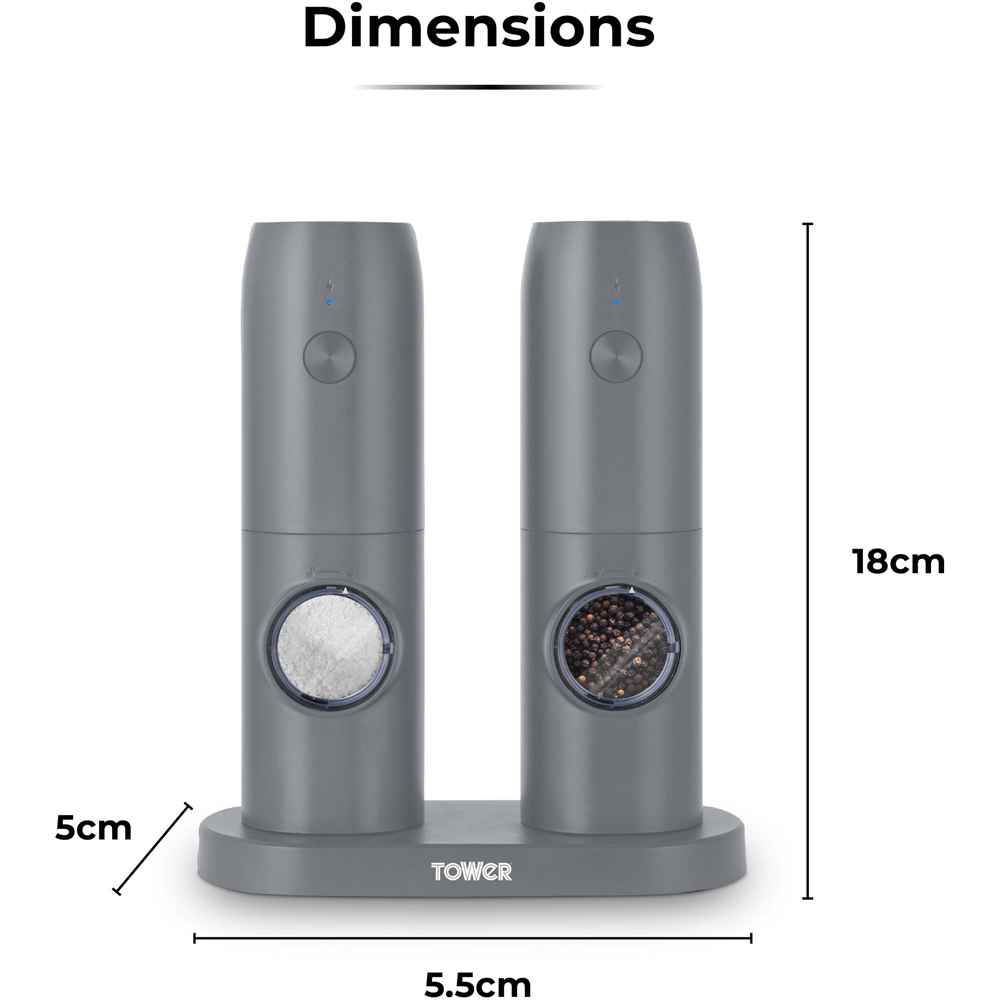 Tower 2 Piece Grey Electronic Rechargeable Salt and Pepper Mills Set