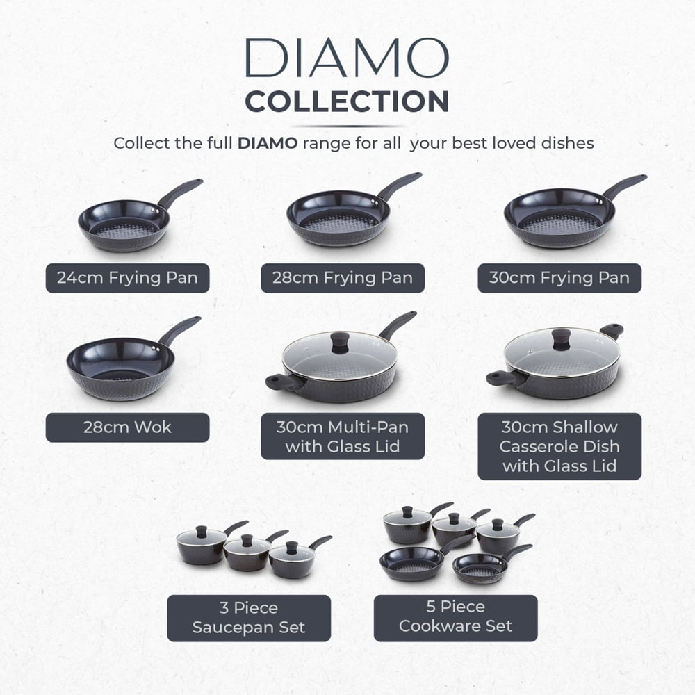 Cook deliciously sizzling fajitas and flavoursome stir-fry dishes with the Tower 28cm Black Diamond Wok. Featuring high-grade non-stick technology, the Black Diamond ceramic coating is 7 times stronger than other non-stick coatings, and is PFAS, PFOA, PTFE, lead and cadmium-free so you can enjoy healthy meals using little or no oil. Its high quality, long-lasting forged aluminium body enables quick and easy adjustment of temperatures for more efficient cooking results, with no hot spots. The wok has a softtex handle for comfortable control over your cooking, ensuring comfort through the entire cooking process. Its bonded steel base provides even heat distribution to ensure your food is cooked thoroughly, and is designed to work with any hob type including induction. The non-stick ceramic coating prevents food from sticking to the surface, and this wok is dishwasher safe for an even easier clean after cooking.