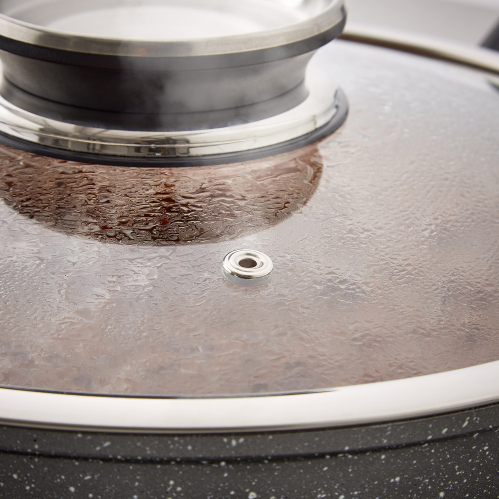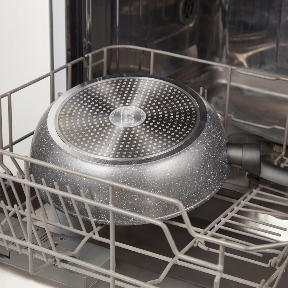 Cook deliciously sizzling fajitas and flavoursome stir-fry dishes with the Tower 28cm Forged Multi-Pan in graphite. Featuring high-grade non-stick technology, the Cerastone coating is five times stronger than other non-stick coatings and is PFAS, PFOA, PTFE, lead and cadmium-free so you can enjoy healthy meals using little or no oil. Its high quality, long-lasting forged aluminium body enables quick and easy adjustment of temperatures for more efficient cooking results, with no hot spots. The multi-pan has a soft tex handle for comfortable control over your cooking, with an infuser lid that helps lock in and add extra flavour to your dishes. Its bonded steel base provides even heat distribution to ensure your food is cooked thoroughly and is designed to work with any hob type including induction. The non-stick ceramic coating prevents food from sticking to the surface, and this multi-pan is dishwasher safe for an even easier clean after cooking.