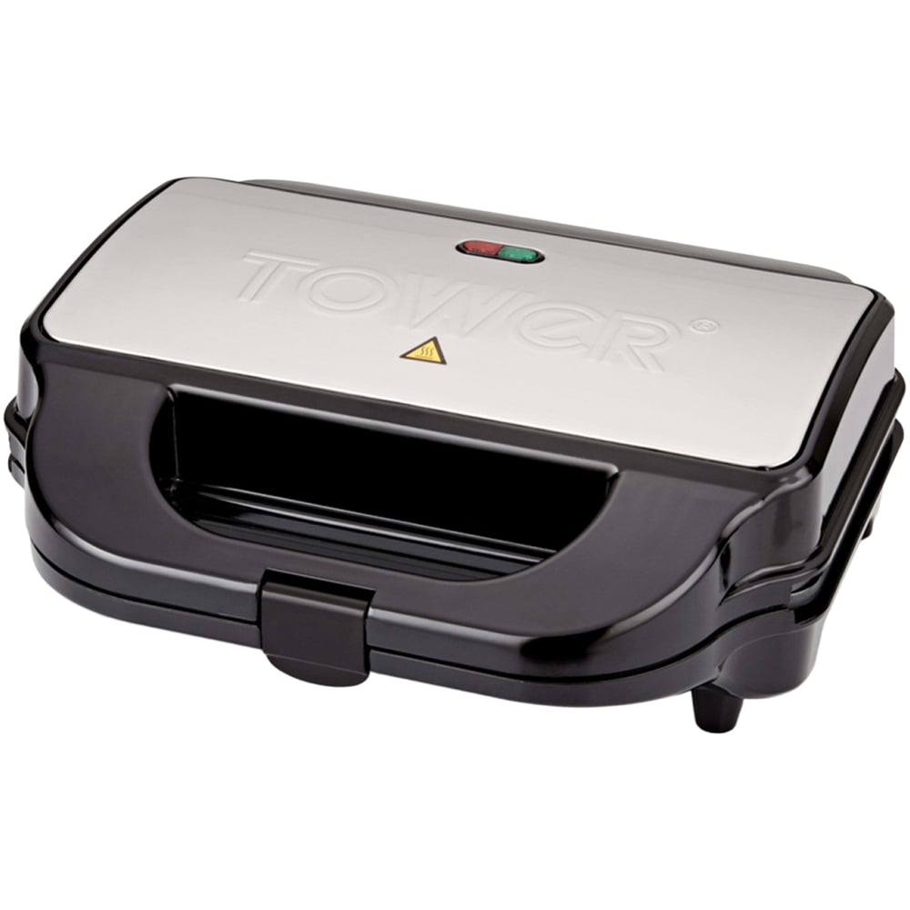 This Tower 900W 3-in-1 deep filled snack maker is a quick and efficient way of creating the perfect snack in minutes. It includes interchangeable plates, letting you make sandwiches, waffles and grill for ultimate versatile cooking. The dual non-stick easy clean ceramic plates remove the need for oil or butter, so you can enjoy a healthier snack. This snack maker also has the added benefit of cooking both sides at the same time without the need to flip, making the perfect seal to lock in your ingredients. The sandwich toastie maker features power on/ready indicator lights, so you know when it's ready to be used, while the automatic temperature control gives you perfect results every time. Non-slip feet help keep the maker sturdy on your kitchen worktop during cooking, while the safety cut out function provides added peace of mind.