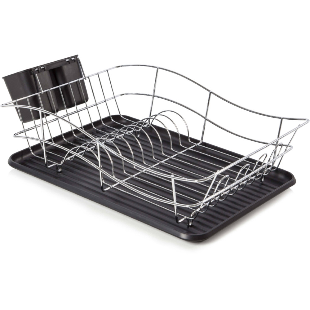 With multiple storage options, this rust-proof Dish Rack from Tower is what your kitchen needs to efficiently dry all of your dishes. Its full size can hold up to nine dinner plates and, with the addition of two cutlery holders, can easily store all of your knives, forks and spoons. The chrome-plated stainless steel design allows dishes to properly dry while also protecting them from unwanted chips and scratches. It's also a great space-saver and fits perfectly on most kitchen countertops, while the removable plastic draining tray ensures your worktop remains clean and tidy at all times.