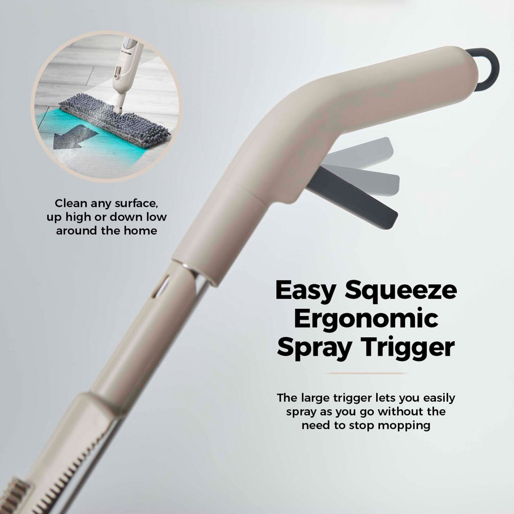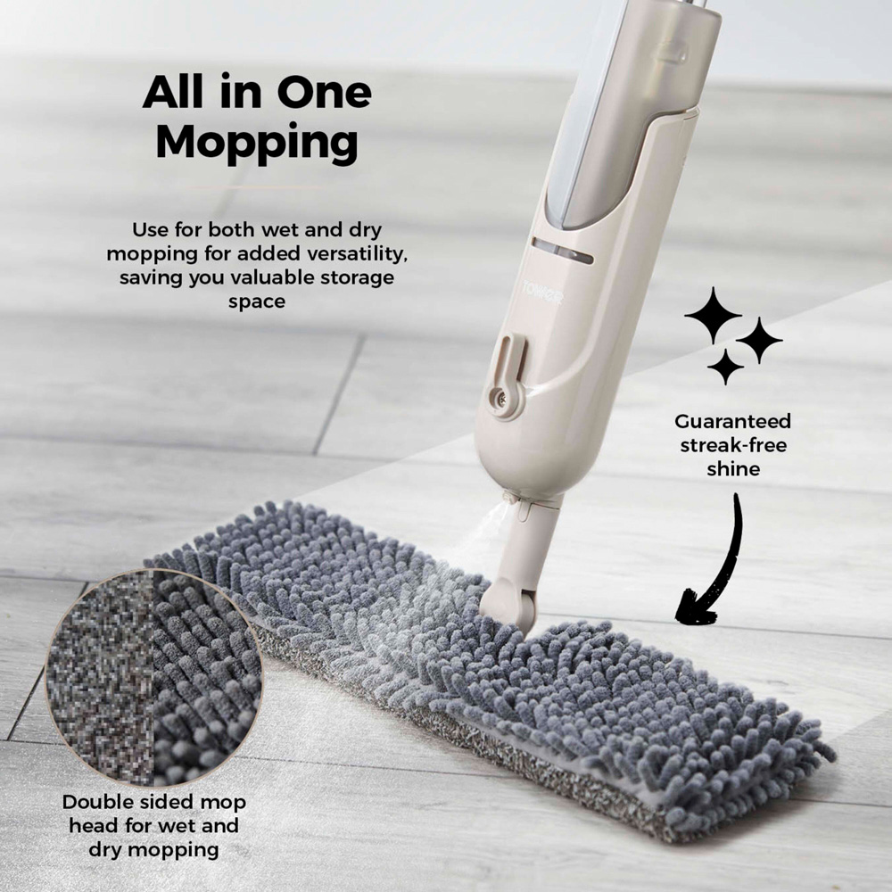 Say hello to effortless cleaning with the Tower Dual Container White Spray Mop. Simply fill the dual anti-leak tank with two of your favourite floor cleaning solutions, and you're ready to go. The easy squeeze trigger allows you to spray as you mop, making cleaning a breeze. The chenille material of the mop effortlessly tackles dirt and grime on a variety of surfaces. The dual-sided mop head can be used for both wet and dry mopping, providing added versatility. The microfiber cleaning tool makes it easy to remove dirt and hair from the pad, keeping them clean always.