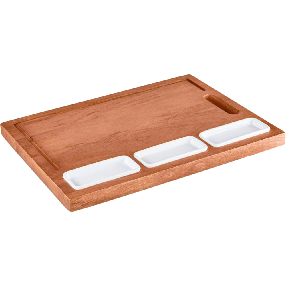 - Large board with 3 ceramic bowls