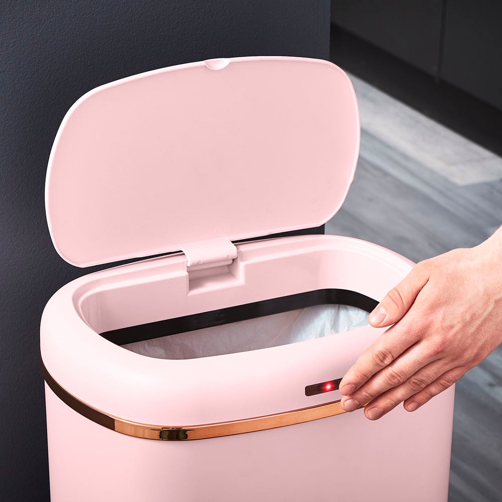 Hygienically dispose of your household waste with the Tower Pink Square Sensor Bin 58L. It features a touch-free opening so that you can dispose of household waste hygienically with one swift hand motion. After 5 seconds of inactivity, the lid automatically closes to lock the bin during unwanted hours. Made with a robust stainless steel body, it makes a long-lasting, reliable kitchen essential. Apart from this, it features a Cavaletto design means you don't have to compromise on style. Includes a bin liner retainer ring to keep the liner in position, prevent mess and make replacing it simple.