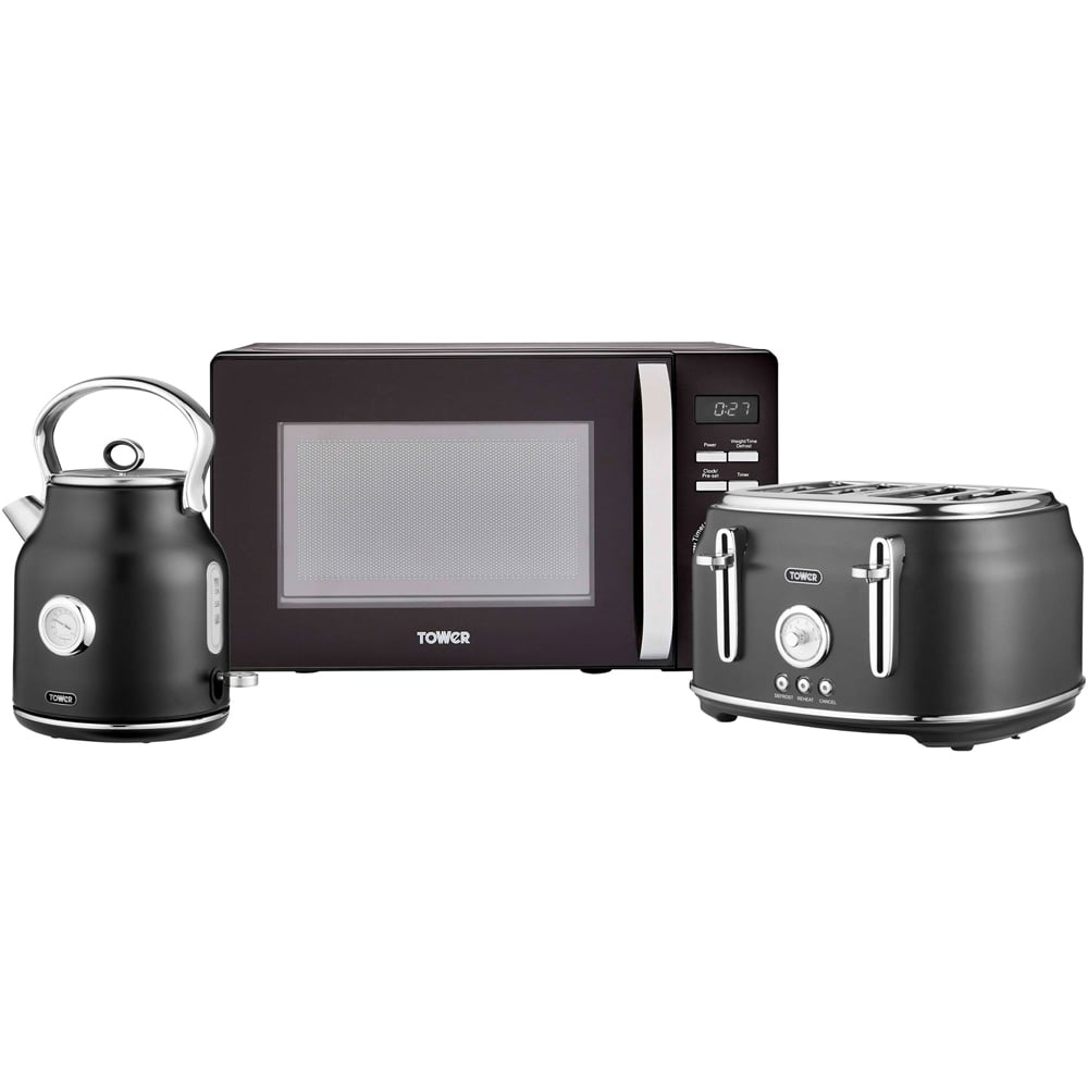 Make a statement in your kitchen with this Tower Renaissance kitchen essentials bundle. In this elegant collection you get the 4 Slice Toaster, Cordless Electric Kettle and Digital Microwave. All items come in a sleek black colour, making them a perfect addition to any modern kitchen.