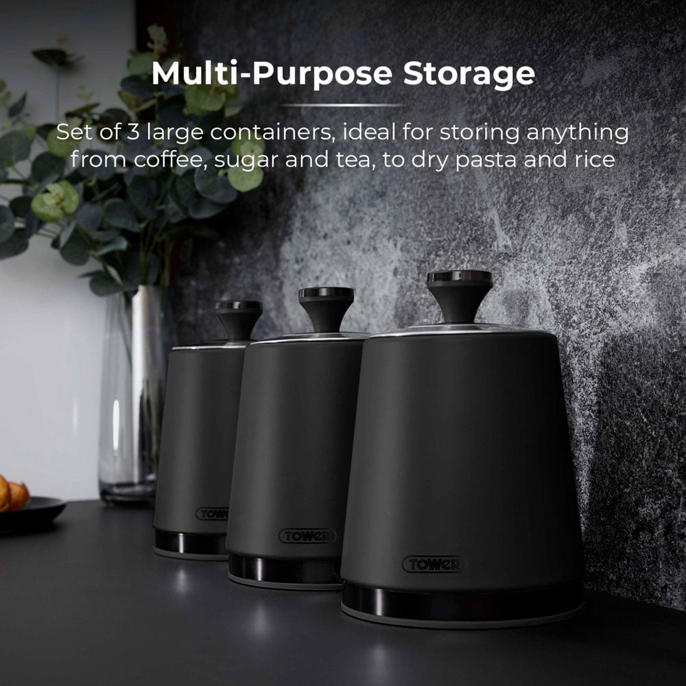 Tower Sera Black 3 Piece Kitchen Canister Set
