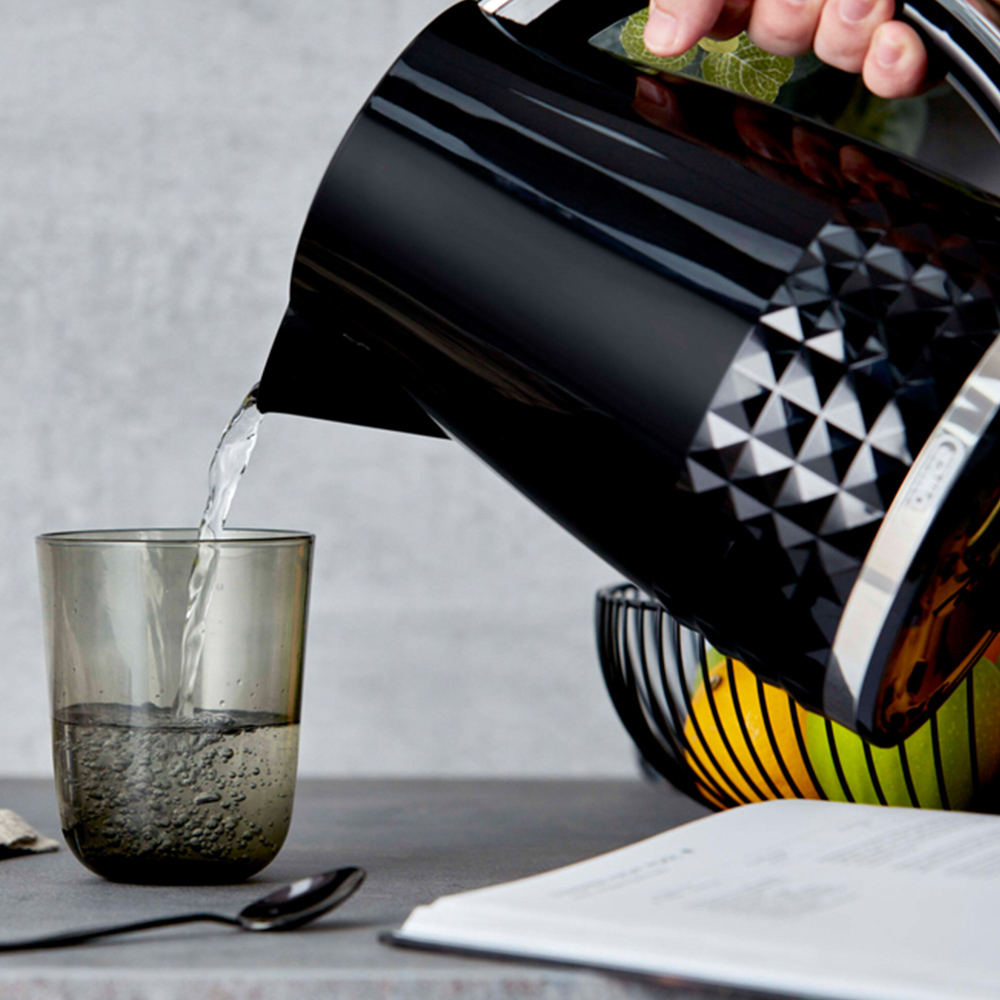 Introducing the elegant Tower Solitaire breakfast bundle. You get a cordless kettle and 2 slice toaster, both featuring an embossed 3D diamond pattern with black coating and chrome accents. This collection elevates modern design in the home. Add some character to your everyday essentials.