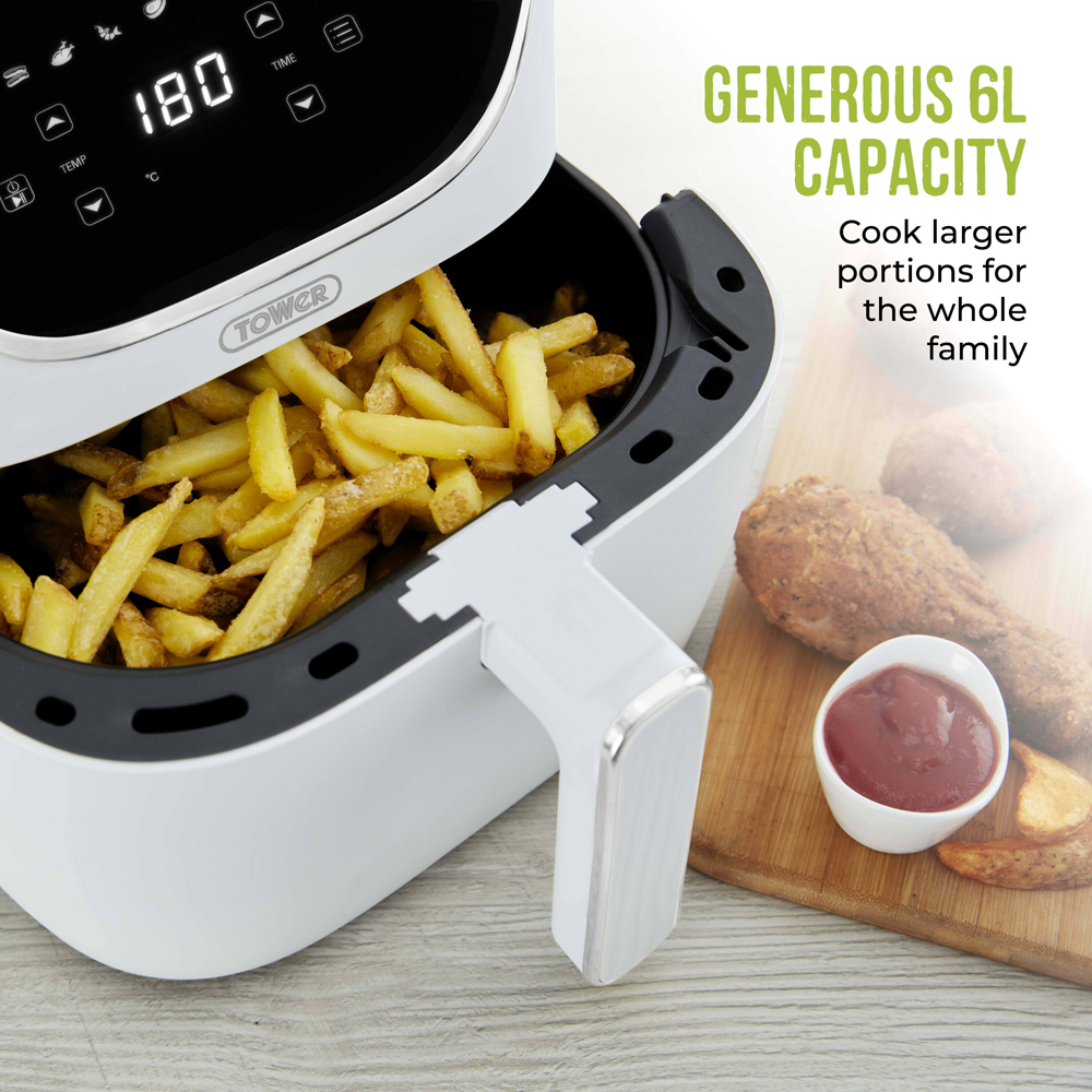 Cook healthy food at home and save money on your energy bills with our easy-to-use air fryers. Designed to provide all the taste in a healthy way, they're perfect for cooking homemade chips, crispy chicken and even baked goodies! Our air fryers come in a range of sizes so you can cook alone or make a feast for the whole family. If you're short on worktop space, take a look at our compact air fryers which come with enough capacity to cook meals for one to two people.