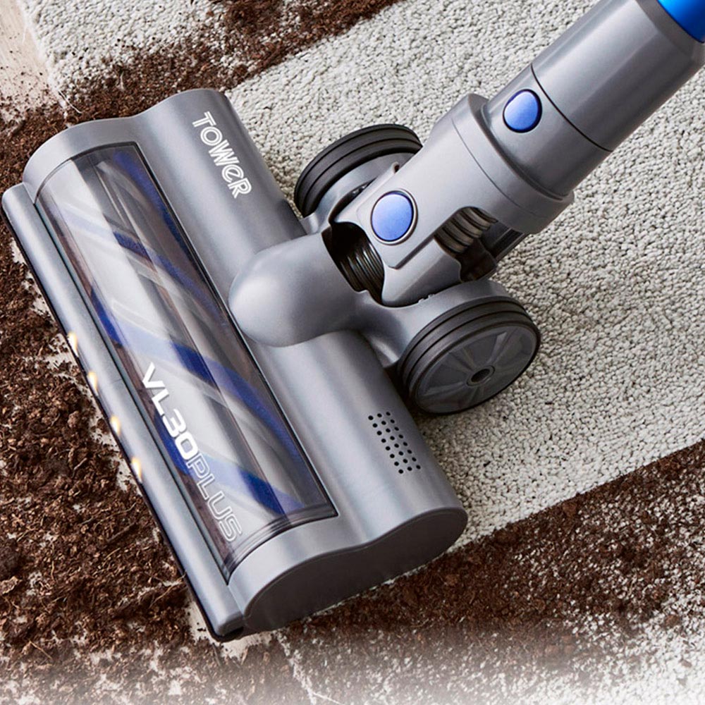 Effortlessly achieve a more efficient and deeper clean around the home with the VL30 Cordless 3-in-1 Pole Vacuum Cleaner from Tower. Its powerful built-in rechargeable battery delivers 35 minutes of continuous run time from a single 4-hour charge for hassle-free cleaning. Use as a cordless vacuum for carpets and hard floors, a detachable handheld for cars, stairs and upholstery or extend the pole for higher hard-to-reach areas like ceilings and curtains. The cyclonic suction provides consistent airflow, effortlessly sucking up and breaking down dirt from all floor types for a thorough clean. Its ultra-efficient motorised floor head agitates dust and dirt, leaving carpets and hard floors clean and fresh. It transforms into a handheld vacuum that is perfect for staircases, cars and upholstery. An anti-allergy HEPA 13 filter removes 99.95% of fine particles from 0.3 microns, making it ideal for allergy sufferers.