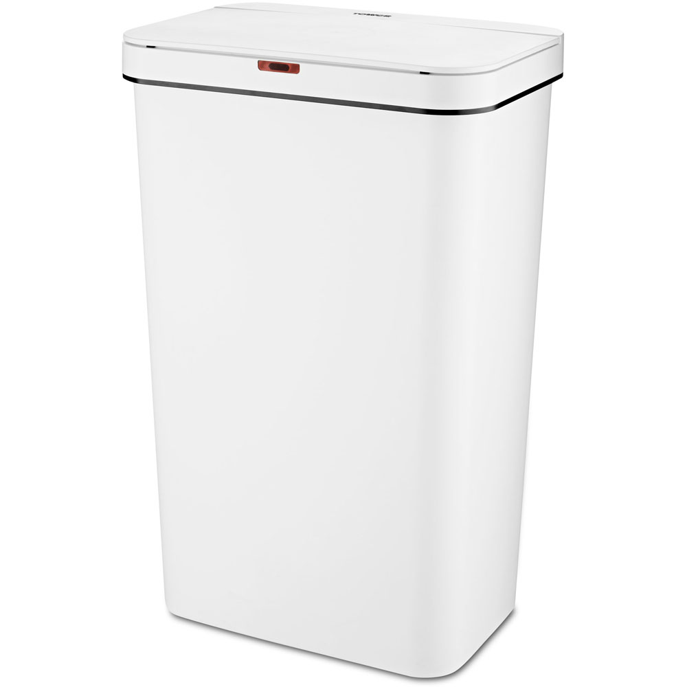 Dispose of kitchen waste in a smart and hygienic way with this Tower White Rectangular Sensor Bin 50L. Featuring an in-built lid motion sensor, the sensor bin senses hand movement above the lid for automatic opening to make disposing of waste hygienic. After a few seconds of inactivity, the bin lid will close automatically with a soft-closing function that causes minimal noise disruption. The power switch button enables you to operate the bin manually without the requirement for batteries. The durable PP body contains a 50-litre inner capacity and features a white colour-coated exterior to make a perfect kitchen addition.