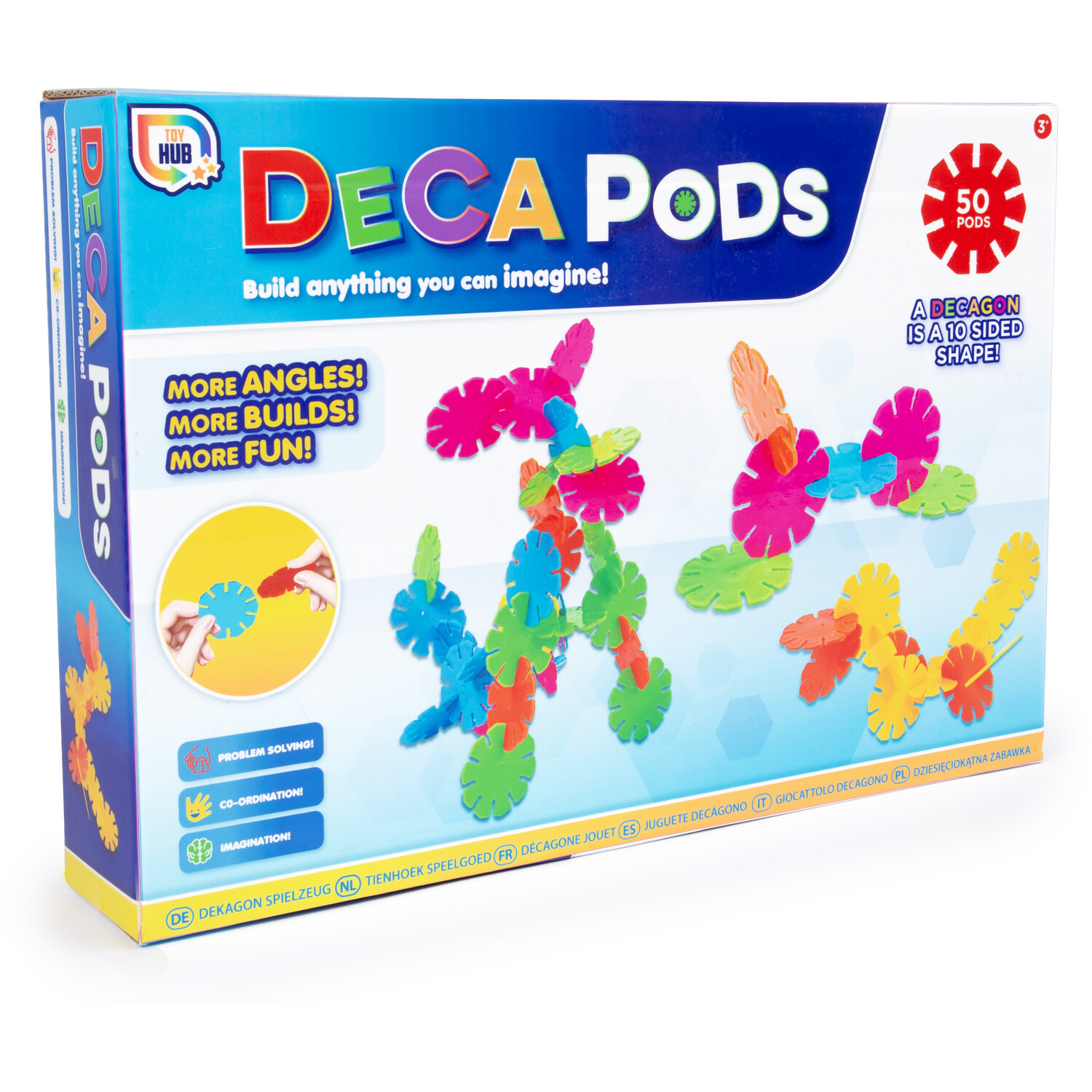Promote creativity and imagination with this Decapods set. With 50 colourful pods inside, there are so many things to build! With more angles and more builds, there is so much fun to be had. The Decapods have a 10-sided shape and fit together to create all sorts of beautiful things! Copy what you find on the box or create your own to help with your problem-solving, coordination, and imagination.