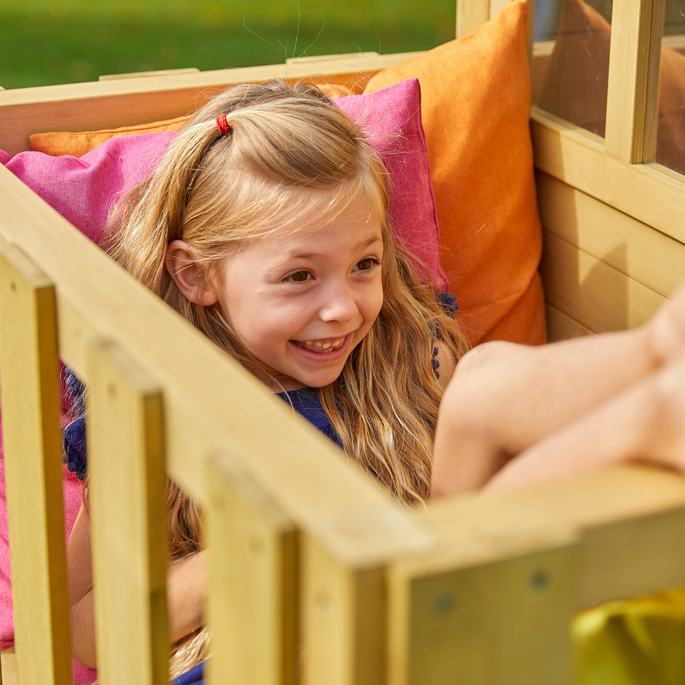 The TP Treehouse Wooden Playhouse will provide hours of fun at any time and is guaranteed to put smiles on your children’s faces for years to come. Including a balcony for extra space, perfect for relaxation on a sunny day or adventure. Plus a swing arm and slide for even more fun! Attach the panel kit for an extra level of customisation on your little one's new favourite outdoor play space.