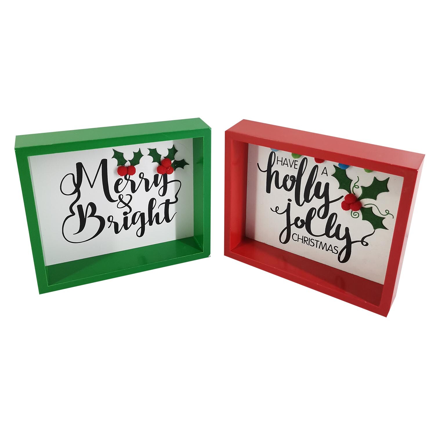 Add some festive cheer into your home with this fun and colourful Traditional Pom Pom Christmas Box Plaque. Available in an assortment of styles, one red box reading 'have a holly jolly Christmas' and one green box reading 'Merry & Bright'.
