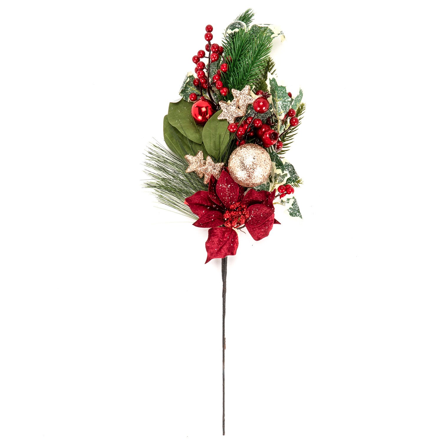 Simple and elegant in design, this Traditional Star Poinsettia Pick is a brilliantly versatile decoration for the Christmas season. This pick is ideal for use on its own in vases for instant festive flair, or for using in crafts whilst making wreaths, garlands, and more! Featuring sophisticated stars coated in gold glitter for a luxurious finish, this pick is the perfect piece of Christmas floristry.
