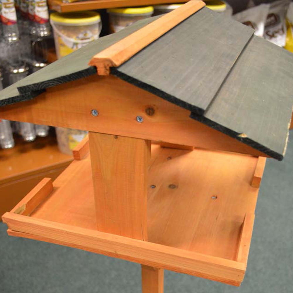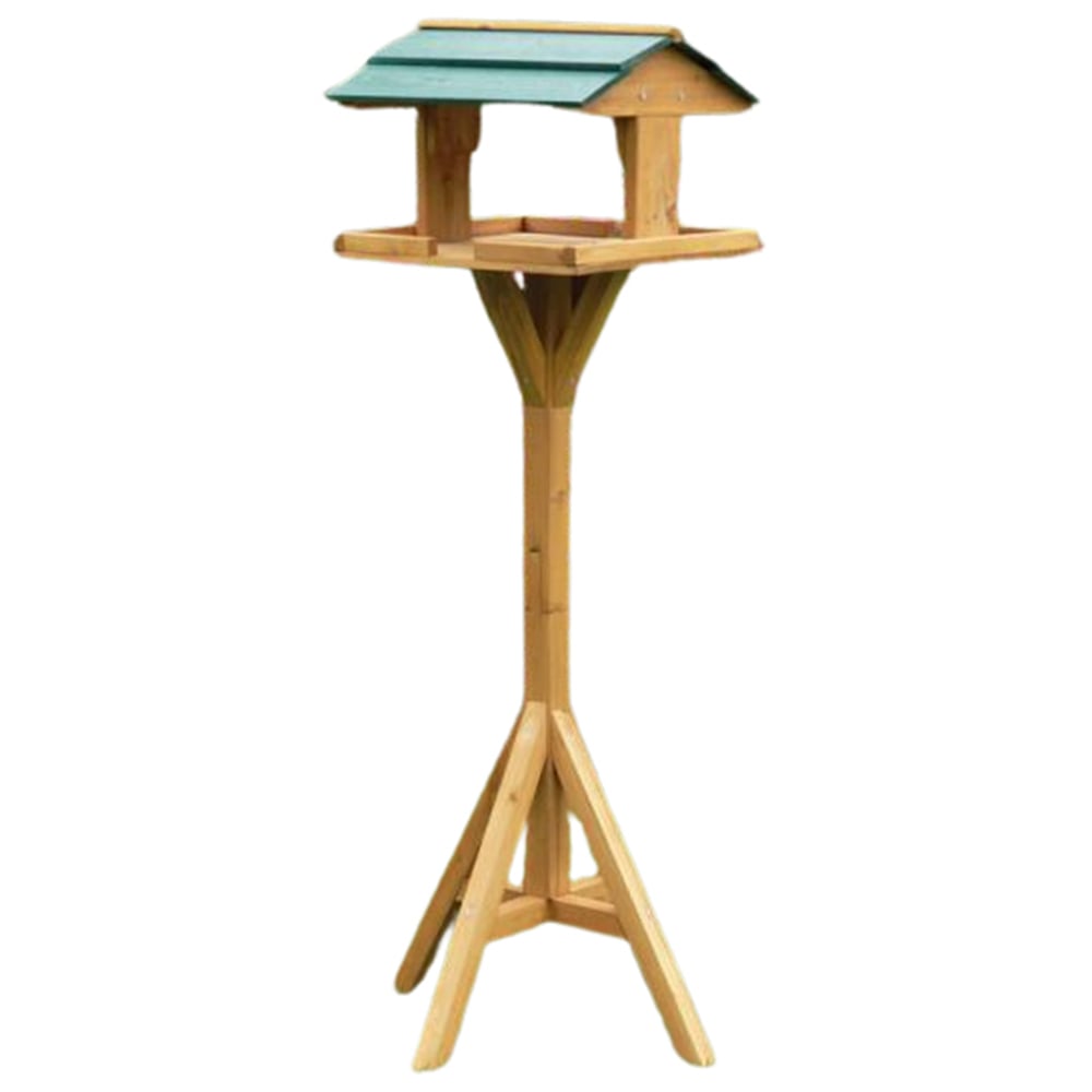 Introduce some delightful feathered friends to your outdoor area with the Traditional Wooden Garden Bird Seed Feeding Table. This bird table, standing at a height of 116cm, features a sturdy construction made from FSC certified wood. The table's top has a width of 34cm, providing ample space for birds to perch and enjoy their meals. The slate effect roof adds a touch of elegance to the design. By offering wild bird food all year round, especially during important periods such as fledgling, nesting, and breeding, you contribute to the survival of many native bird species. To ensure a hygienic environment, it is crucial to regularly clean the feeding stations with warm water and a safe detergent. Enhance your garden and attract some new feathered friends with this charming bird feeding table.