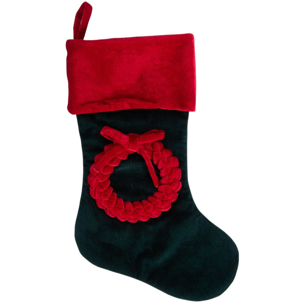 Add a touch of timeless holiday tradition to your mantelpiece with the Traditional Wreath Stocking. Available in an assortment of styles, this charming stocking features a classic design with a festive wreath accent, perfect for adding a touch of warmth and cheer to your Christmas decor. It is spacious enough to be filled with treats and small gifts.