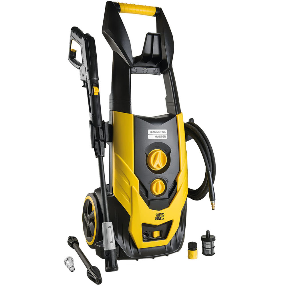 When it comes to quick, easy, and efficient cleaning, look no further than this outstanding high-pressure washer from Tramontina. Ideal for frequent use, Tramontina's high-pressure washer with a 5m high-pressure hose with adjustable flow, 2100W 2100psi 127V offers convenience, savings and excellent cleaning power. Tramontina's high-pressure washers save up to 80% water compared to a traditional hose. This high-performing, high-quality product has a nozzle to adjust the water outlet to a straight jet or fan spray. It comes with accessories. Dimensions 38 x 30 x 87cm high. Weight: 20kg. Power: 2100W/220V. Max pressure 2100psi. Water flow 440 l/h.