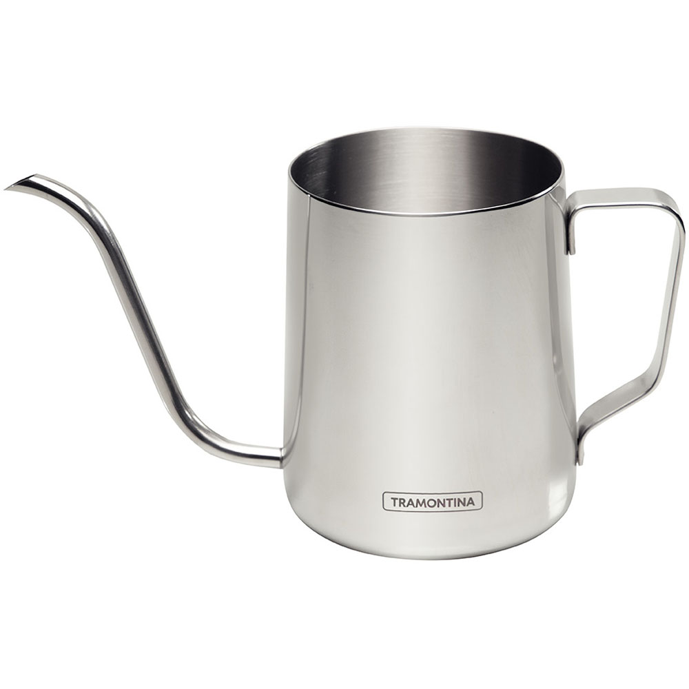 Pour hot beverages in style with the Tramontina Silver Pour Over Gooseneck Kettle. Who doesn’t like coffee? It is one of those universally understood words and a beverage that is loved across the world. It can come in many different guises and can be enjoyed in many different ways. In recent times, it has become even more popular with tastes and products designed to allow you to enjoy coffee in whatever way you like - from hot or iced, pure or mixed to filtered, pressed or cold brew. Tramontina is big into coffee culture and offers a wonderful selection of products for you to enjoy your favourite coffee at its best. For safe and precise pouring when you are filtering coffee, or indeed tea, this stainless steel pour-over gooseneck kettle is just what you need. Made from high-quality 18/10 stainless steel, the long-curved spout is designed for excellent control of water flow, thereby offering the utmost precision when pouring over ground coffee or tea leaves to filter into your cup. Also, this method of brewing also extracts the optimum flavours and aromas. Care and use: It is dishwasher safe and we recommend that you do not place directly on the stovetop, but rather heat the liquid in another container and transfer it to the kettle to avoid staining the steel. Capacity: 600ml.