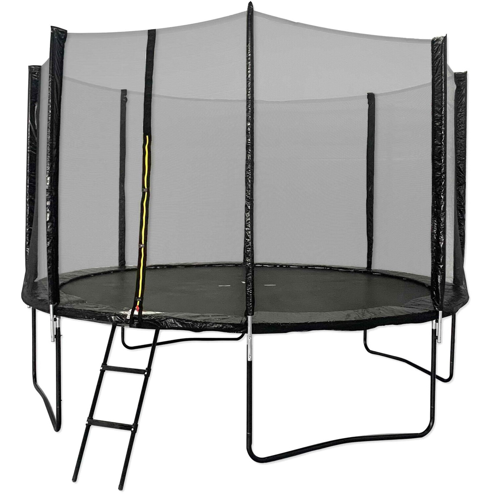 Add fun to the outdoor space with this Trampoline Warehouse 14ft Black Trampoline with a Safety Enclosure Net. This trampoline makes the perfect addition to your backyard for summer fun and school holiday adventures. Featuring an external safety net enclosure, the trampoline ensures that safety is a top priority while you're bouncing away. With a secure design, it provides complete peace of mind while your children play in the outdoors. Equipped with 88 x 140mm springs and a sturdy 1.4mm thick steel frame, this trampoline provides a bounce that's sure to bring smiles to everyone's faces. Also, with a maximum weight limit of 130kg, it is perfect for children and young adults. For added convenience, this package includes a free ladder to make little ones climb on and off the trampoline with ease.
