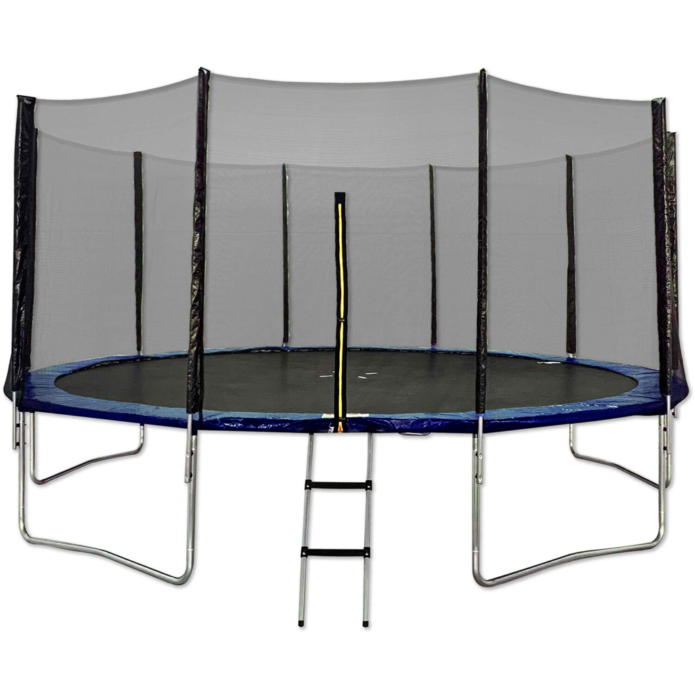 Add fun to the outdoor space with this Trampoline Warehouse 16ft Blue Trampoline with a Safety Enclosure Net. This trampoline makes the perfect addition to your backyard for summer fun and school holiday adventures. Featuring an external safety net enclosure, the trampoline ensures that safety is a top priority while you're bouncing away. With a secure design, it provides complete peace of mind while your children play in the outdoors. Equipped with 110 x 180mm springs and a sturdy 1.4mm thick steel frame, this trampoline provides a bounce that's sure to bring smiles to everyone's faces. Also, with a maximum weight limit of 150kg, it is perfect for children and young adults. For added convenience, this package includes a free ladder to make little ones climb on and off the trampoline with ease.