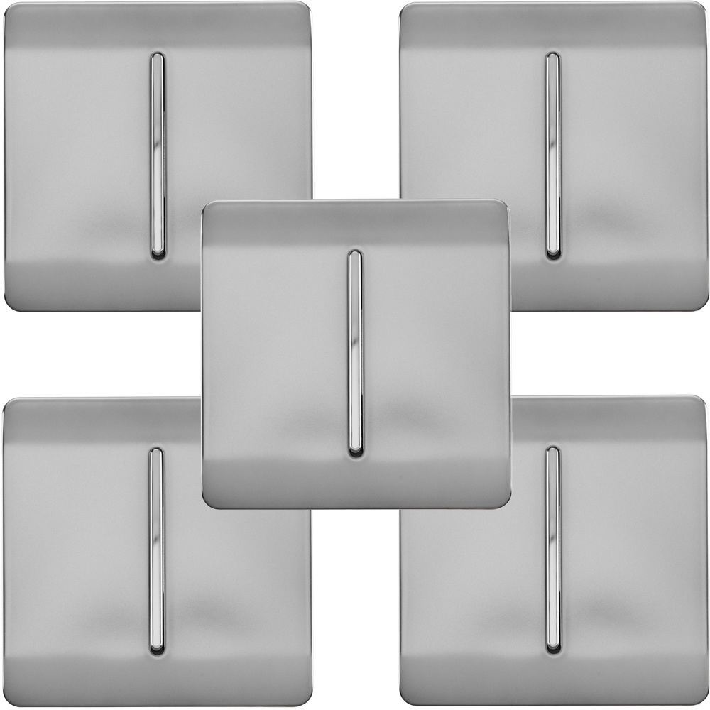 Trendi Switch 1 Gang 1 or 2 Way Brushed Steel Rocker Light Switch 5 Pack