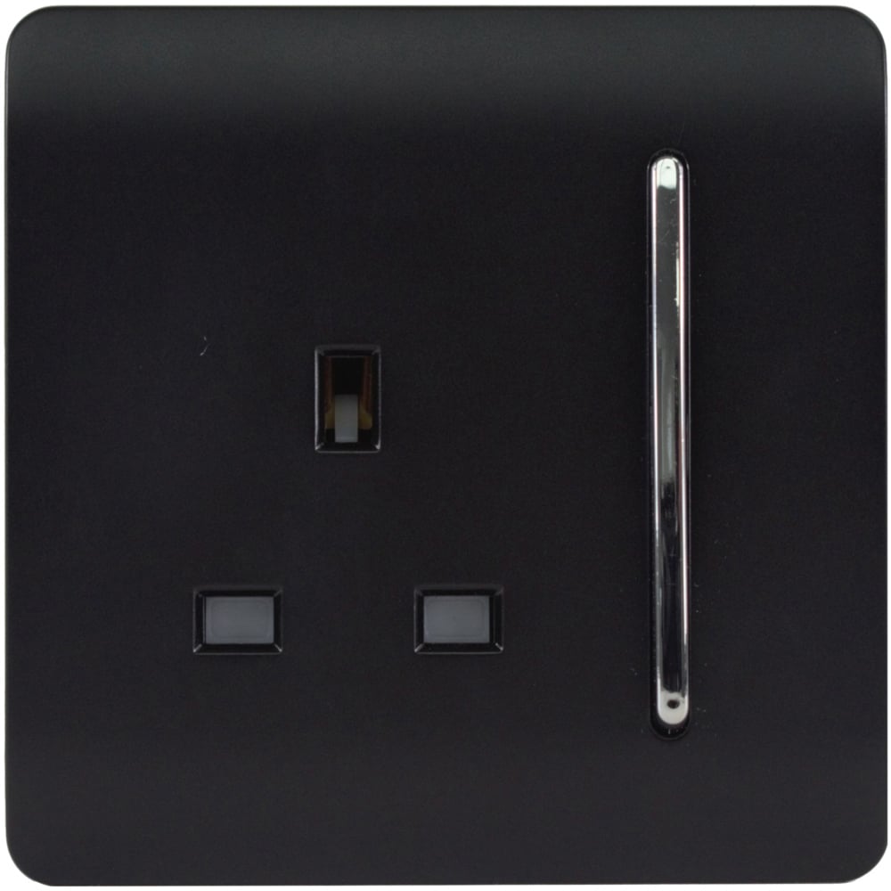 Trendi Switch 1 Gang 13amp Matt Black Switched Plug Socket