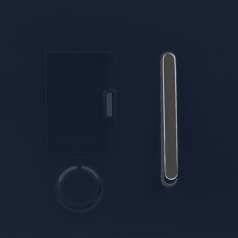 Stay safe while using high-power appliances with the Trendi Switch 13amp Navy Blue Fused Spur with Flex Outlet. It is crafted using high-quality fireproof ABS plastic with a modern appearance. The screwless plate has a rocker switch and a fused spur supported by a back frame with screw holes for easy installation. It does not need any additional wiring, making it easy to clean and maintain. The faceplate has a smooth and polished surface that will not fade in direct sunlight. The module for the product should be installed into compatible back boxes. This version includes a knockout for the insertion of a flex.