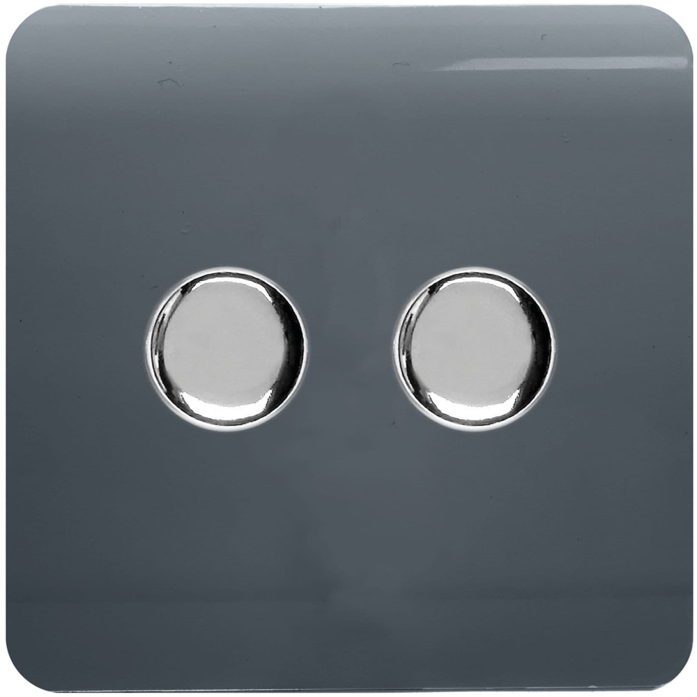 Trendi Switch 2 Gang 10amp Warm Grey Rotary LED Dimmer Light Switch