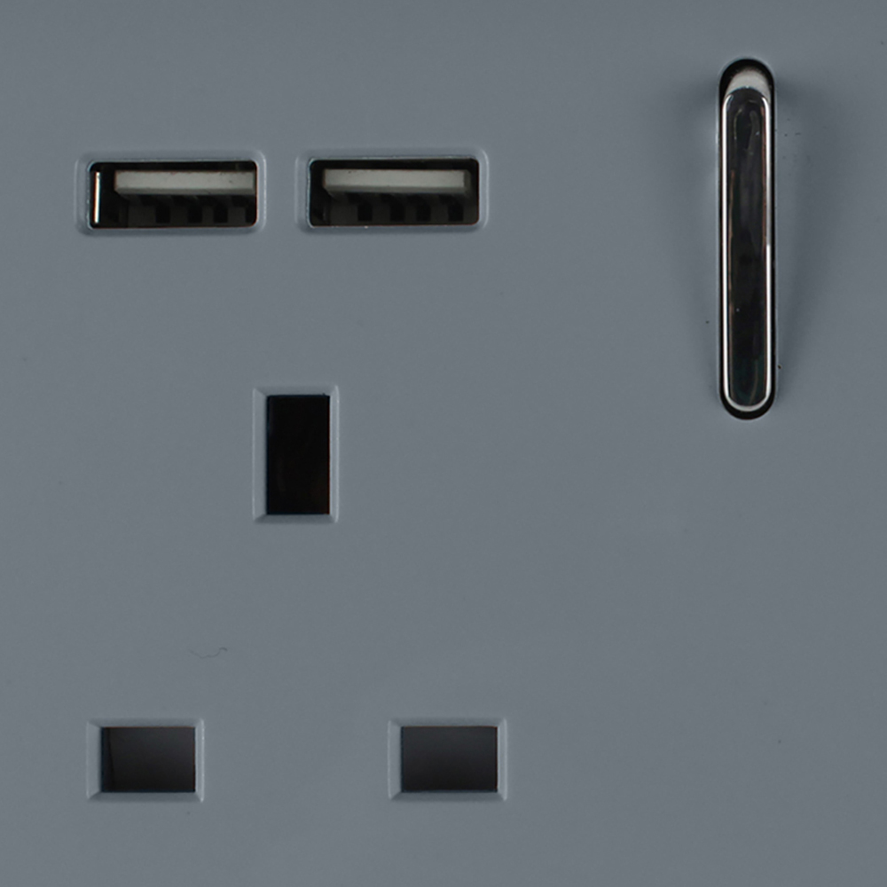 Enhance your home walls with the Trendi Switch 2 Gang 13amp 4 Port USB Warm Grey Plug Socket. With various colours and features, this plug socket makes your home look cleaner and aesthetic. The two-gang 13amp four port USB plug socket includes a sleek chrome rocker on a screwless plate. This feature displays the complete colour of the products. The socket is supported by a back frame storing the screw holes and amp. The module for the product to be installed is stored away in the compatible back box and wiring. This screwless plate’s modern appearance adds to the decorating breeze. Direct sunlight does not take away the colour of the light switch faceplate. It maintains a smooth, polished surface in matt black. The product is easy to clean and can be simply installed. To replace the old switch, remove the faceplate and click on the new one.