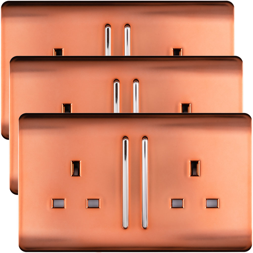 Trendi Switch 2 Gang 13amp Copper Long Switched Plug Socket 3 Pack