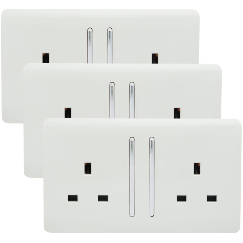 Trendi Switch 2 Gang 13amp Ice White Long Switched Plug Socket 3 Pack