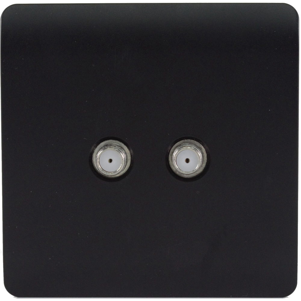 Upgrade your home entertainment setup with the Trendi Switch 2 Gang Male F-Type Matt Black Satellite Television Socket. Crafted from high-quality fireproof ABS plastic, this socket combines durability with a sleek, modern design. It features a screwless plate that displays the complete colour of the product. This screwless plate offers a seamless, polished appearance, making it a stylish addition to any contemporary space. The back frame, which houses the screw holes and module, ensures compatibility with standard back boxes and wiring systems. Installation is effortless with no additional wiring required; the old switch can be easily replaced by removing the faceplate and clicking the new one into the place. The light switch faceplate's matt black surface ensures the socket maintains its elegant look even in direct sunlight.