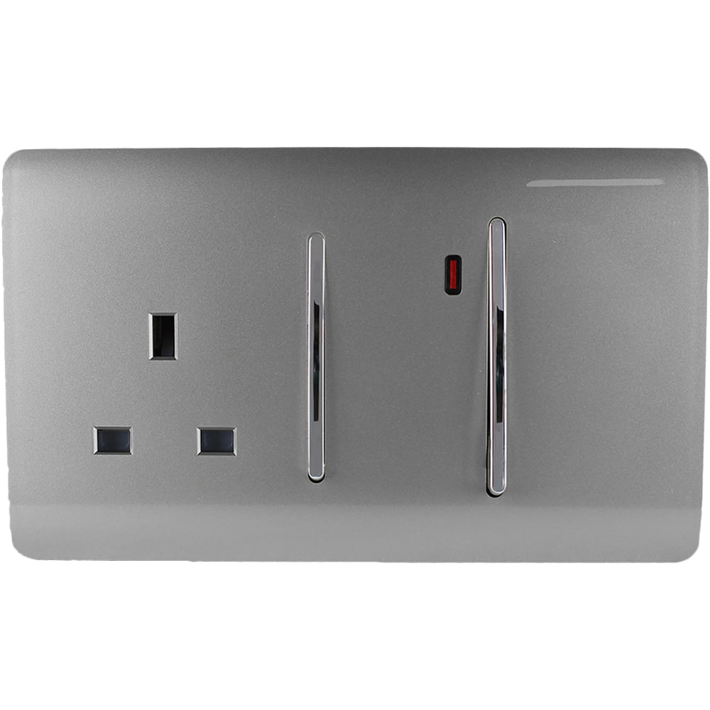 Trendi Switch 45amp and 13amp Light Grey Cooker Switch and Plug Socket with Neon