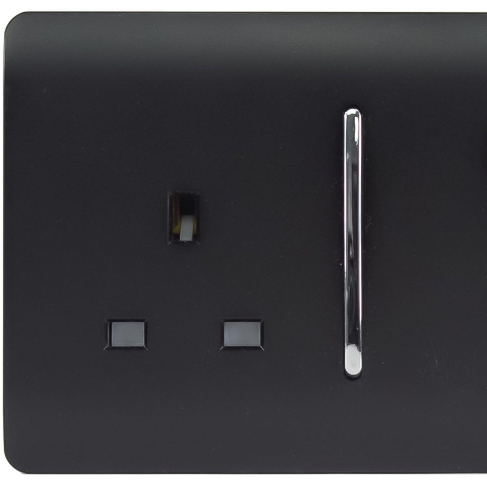Trendi Switch 45amp and 13amp Matt Black Cooker Switch and Plug Socket with Neon