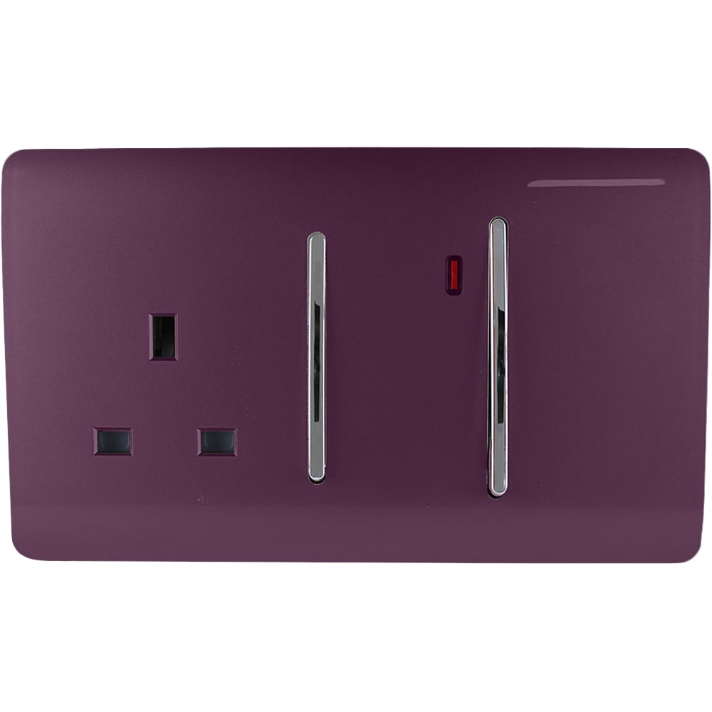 Trendi Switch 45amp and 13amp Plum Purple Cooker Switch and Plug Socket with Neon