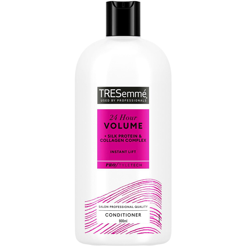 2x of 900ml Tresemme 24H Volume & Body Conditioner for Fine & Flat Hair TRESemm 24 Hour Body Conditioner for voluptuous volume and beautiful bounce that lasts all day. On days you feel flat, turn up the volume and let your hair bounce back, bold and ready to work it all day. The volumizing formulas in TRESemm 24 Hour Body Volume Collection give your locks a big body and all-day bounce, which means you can finally achieve those dramatic styles you've wanted to try. It will help maintain all-day volume and bounce while providing a perfect level of conditioning. A hair treatment for damaged hair made with a unique Volume Control Complex and silk proteins. Help keep your hair from falling flat while making your hair manageable without weighing it down. Formulated to be light enough for daily use, giving you manageable, easier-to-style strands, breakage prevention, and supreme softness - every hour of the day. Professional, affordable salon-quality volumizing conditioner at your fingertips. Try this dry hair treatment alongside the other products in our TRESemmé 24 Hour Body collection.