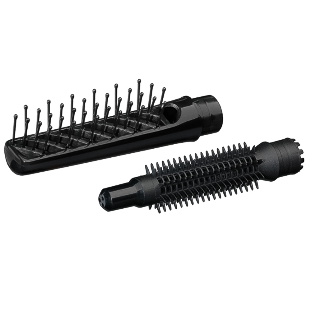 Style your hair with the TRESemmé Black Full Finish Hot Air Styler 300W. This air styler provides gentle styling and complete flexibility with three brush head attachments. The 19mm and 23mm round brushes are ideal for adding root lift and creating body and shape on shorter layers, while the vent brush is perfect for providing a smooth finish. The curl release button ensures a tangle-free finish. Additionally, it offers three heat settings and a cold blast feature.