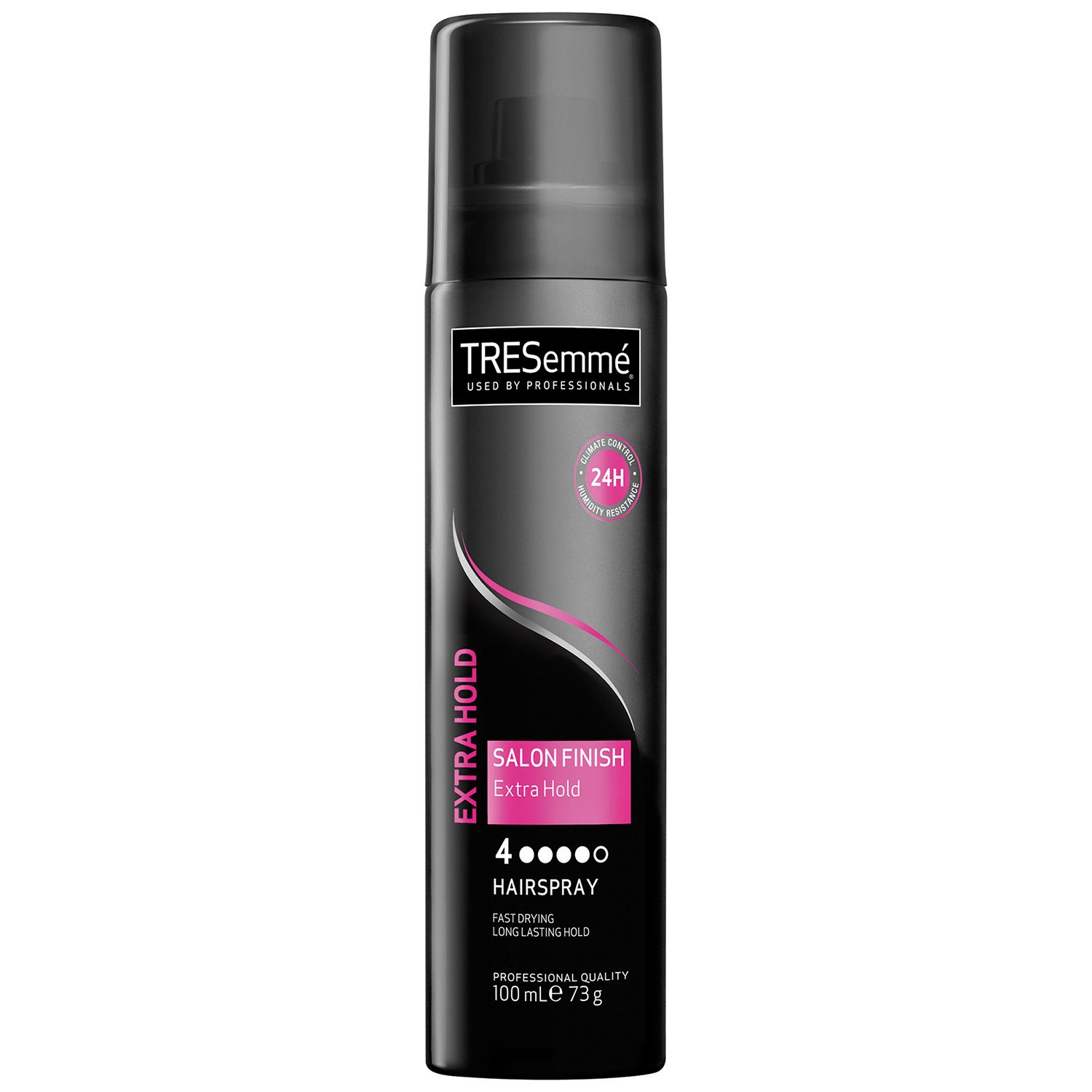 Tresemme's Extra Hold Salon Finish Hairspray keeps your hairstyle in place all day without weight it down. Fast drying for your convenience and offering a long-lasting hold, this professional quality hairspray lasts for up to 24 hours - perfect for casual days and nights outs. Boasting a climate control and humidity resistance formula, this spray is the perfect finishing touch.